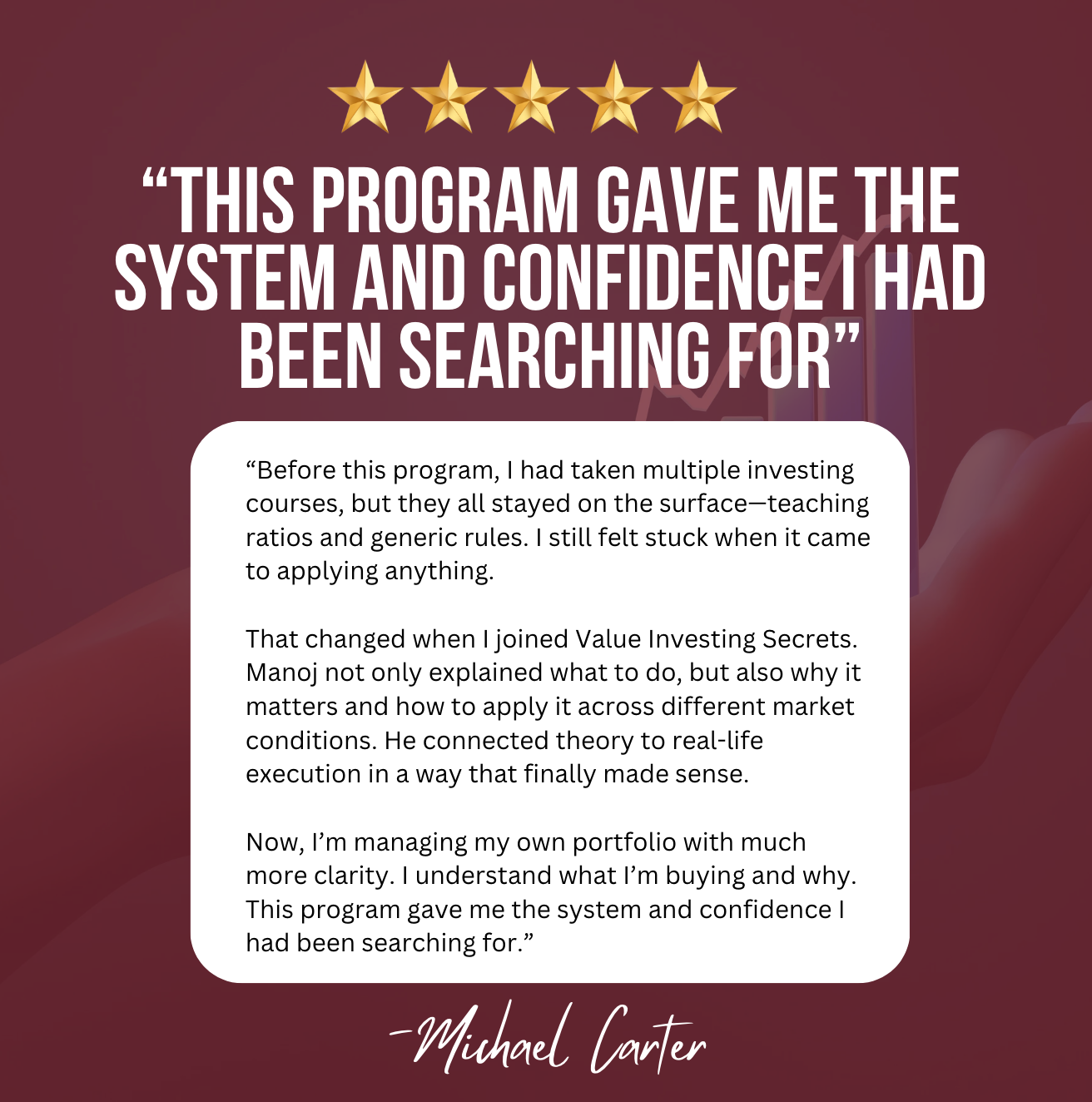 This program finally made investing make sense. I stopped chasing stocks and started building real wealth.