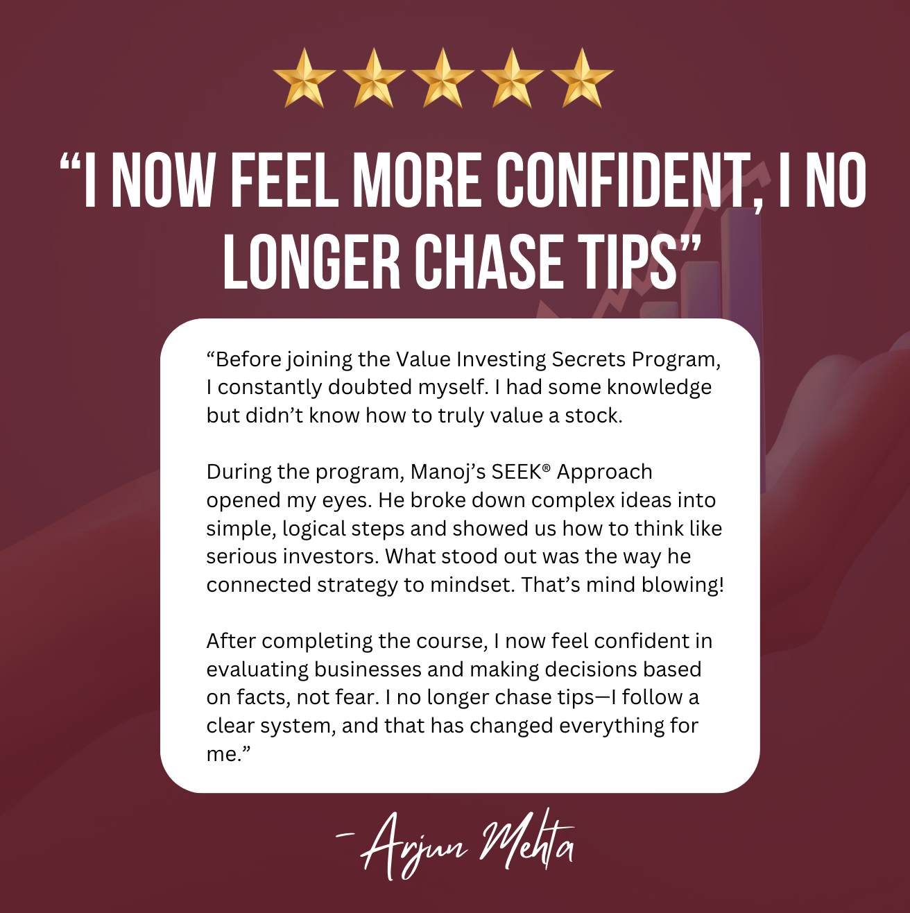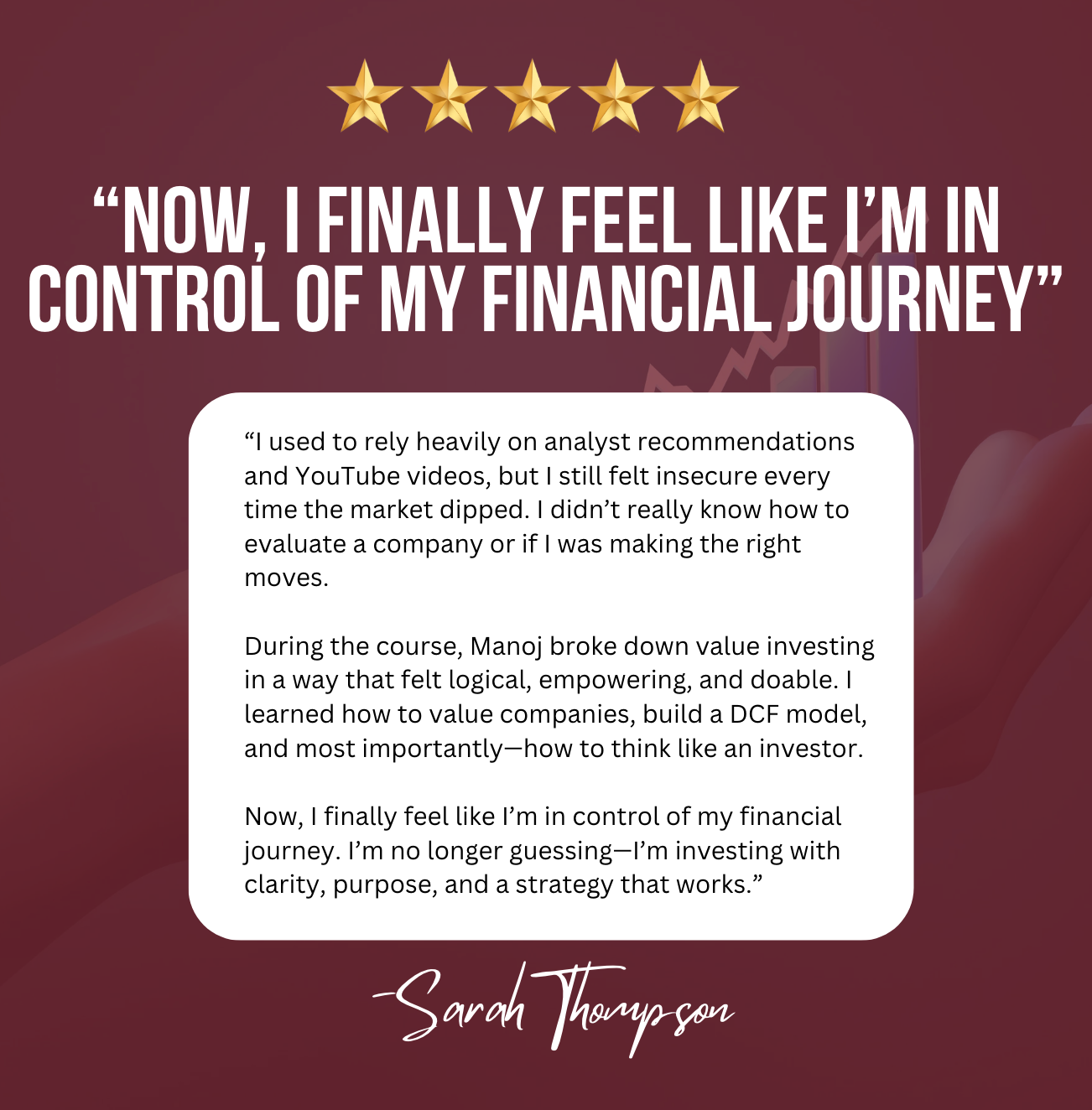 ✅ Feeling Secure: You grasp the fundamentals of growth & value investing and risk management, feeling confident in making calculated trades instead of careless speculations.
