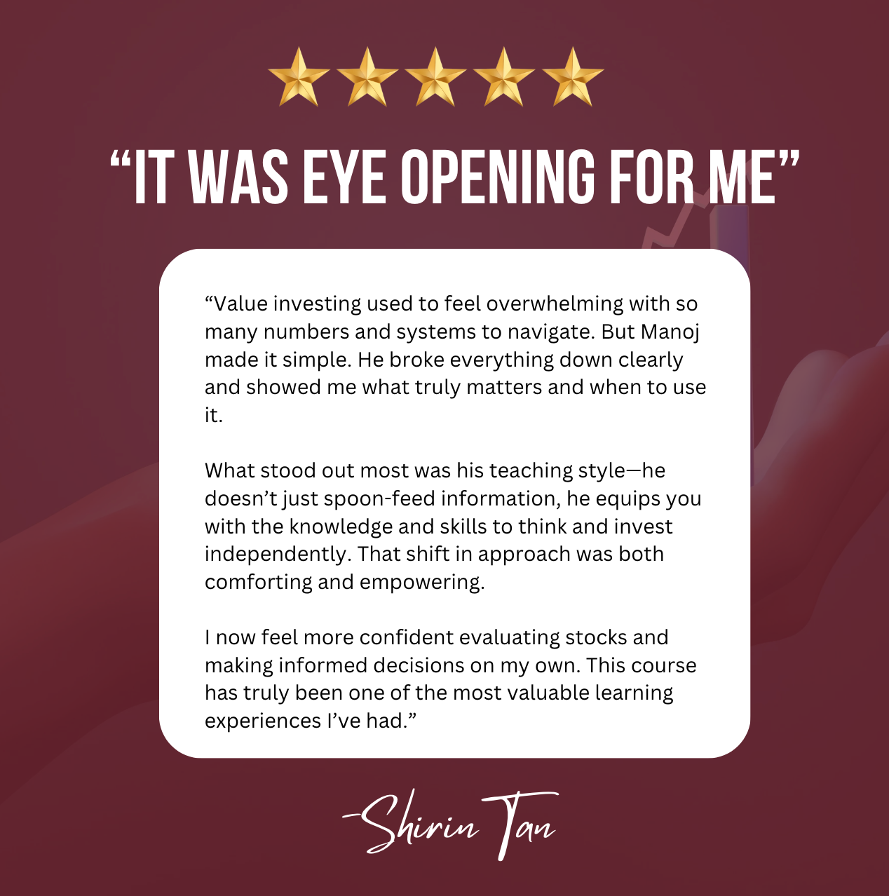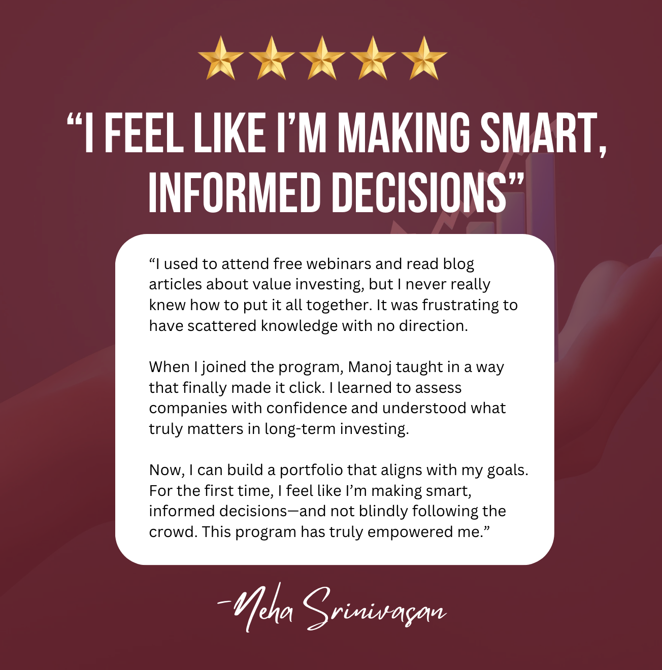 “This is the first time I’ve felt total clarity and confidence while investing. Like I finally know what I’m doing.”